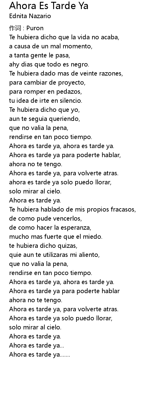 | Ahora es tarde ya, ahora es tarde ya. | |