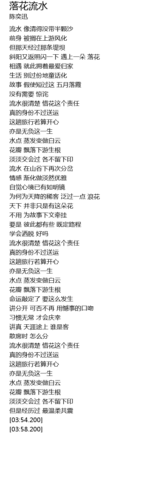 | [03:17.470] | 流水很清楚 惜花这个责任 |