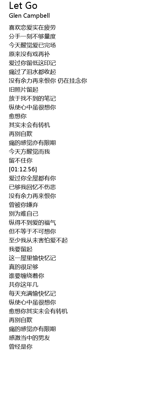 | [01:06.11] | liú bú zhù nǐ |