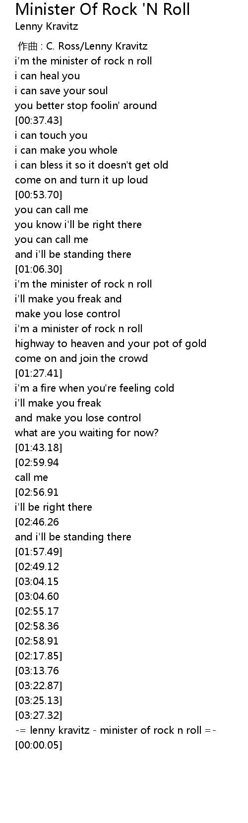 | [03:29.47] | lenny kravitz minister of rock n roll |