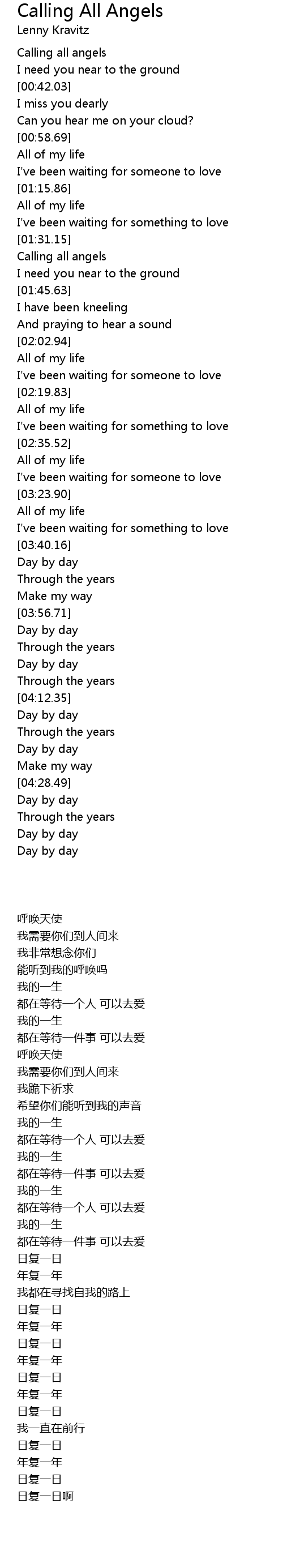 [01:35.76] Calling all angels