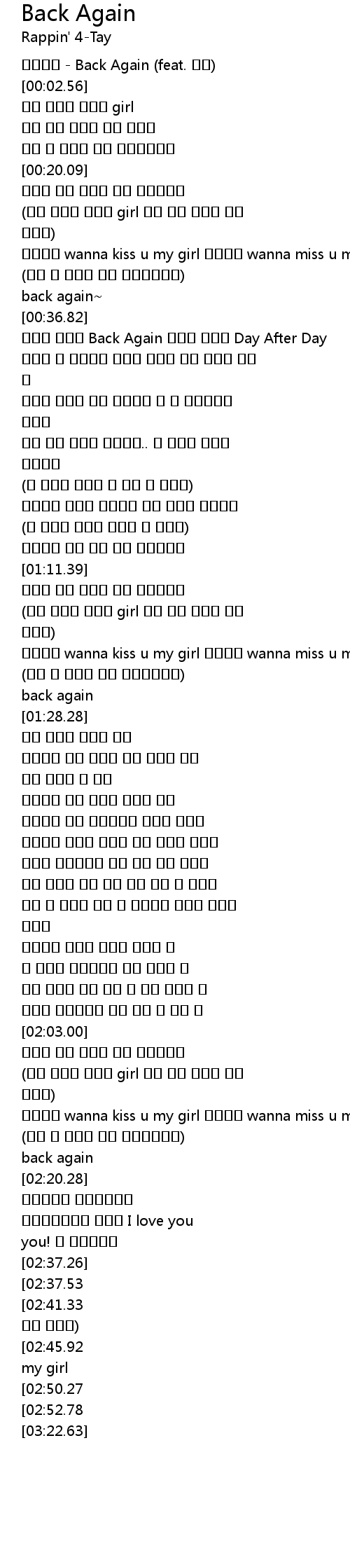 | [00:37.19] | 예전에 그때로 Back Again 매일밤 후회해 Day After Day |