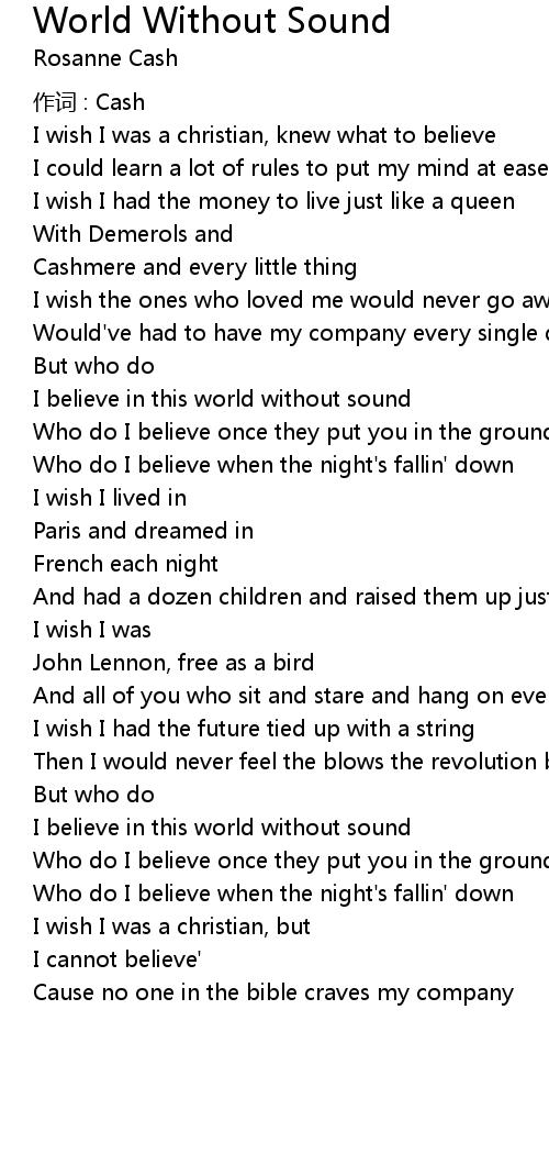 | I believe in this world without sound | |