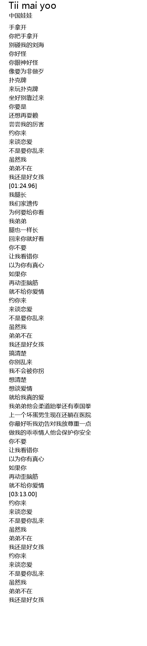| [03:01.05] | nǐ bú yào |