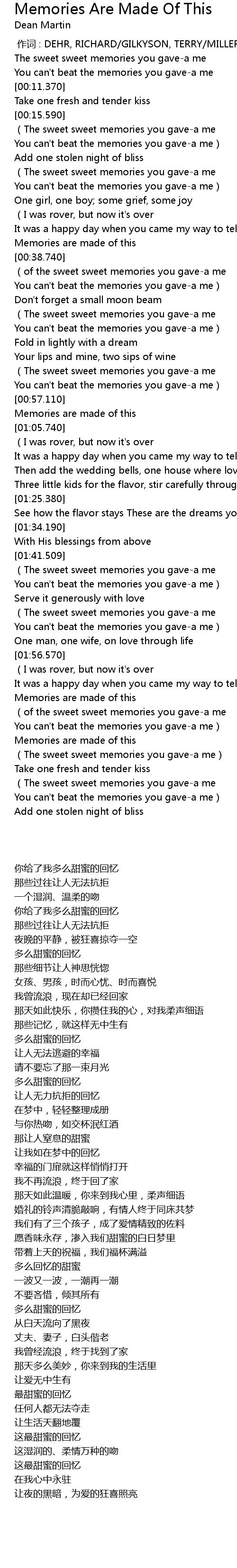| [00:18.730] | You can' t beat the memories you gavea me |