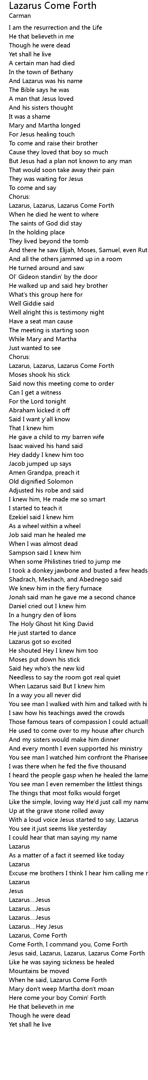 Jesus said, Lazarus, Lazarus, Lazarus Come Forth |