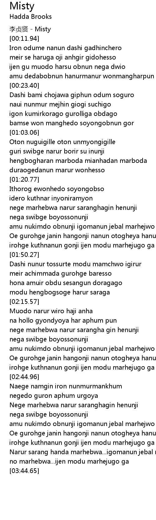 | [00:00.00] | 李贞贤 - Misty |