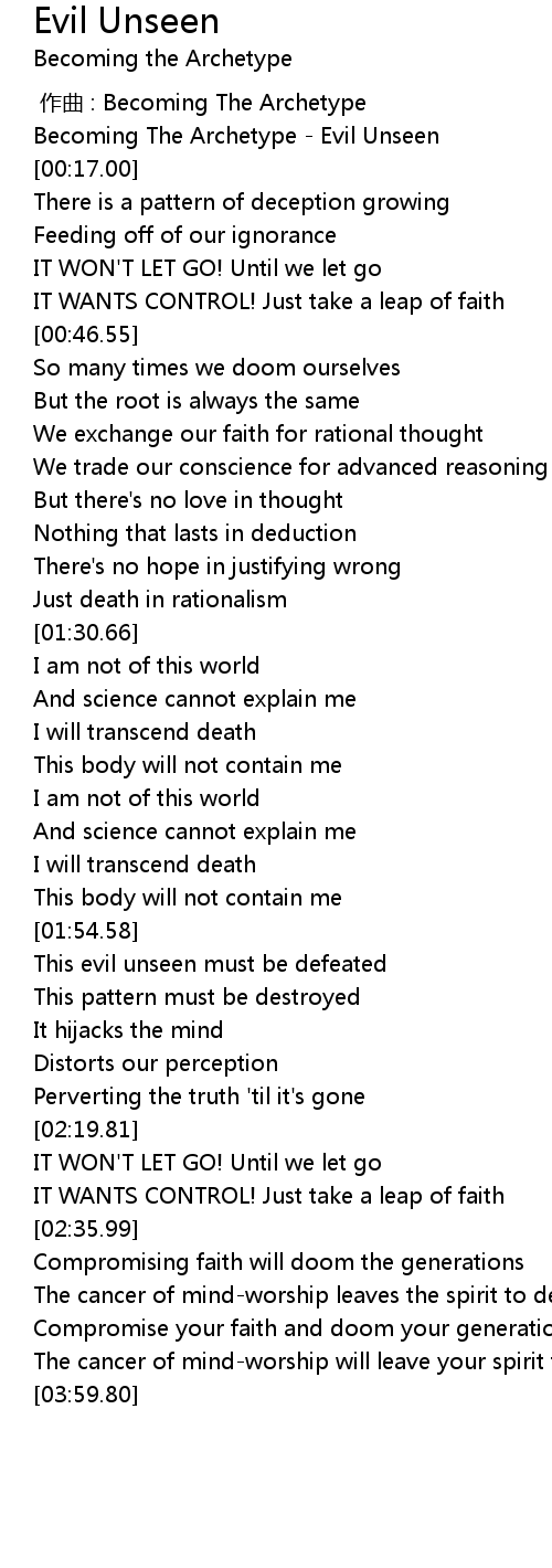 | [00:02.00] | Becoming The Archetype Evil Unseen |