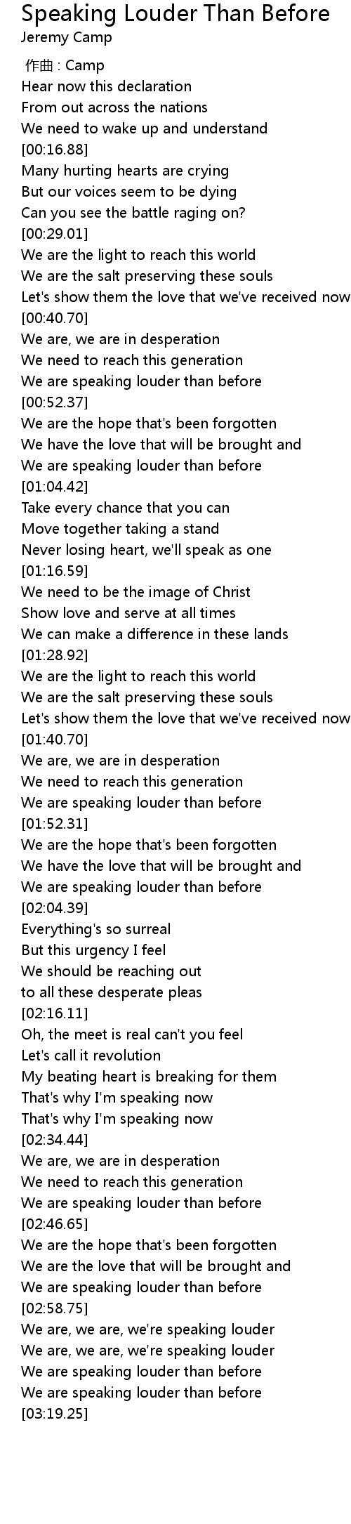 | [03:03.35] | We are, we are, we' re speaking louder |