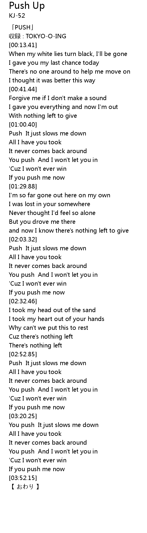 | [00:45.12] | Forgive me if I don' t make a sound |