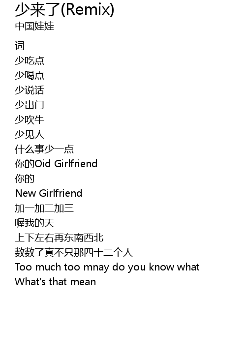 | [00:45.69] | shén me shì shǎo yì diǎn |