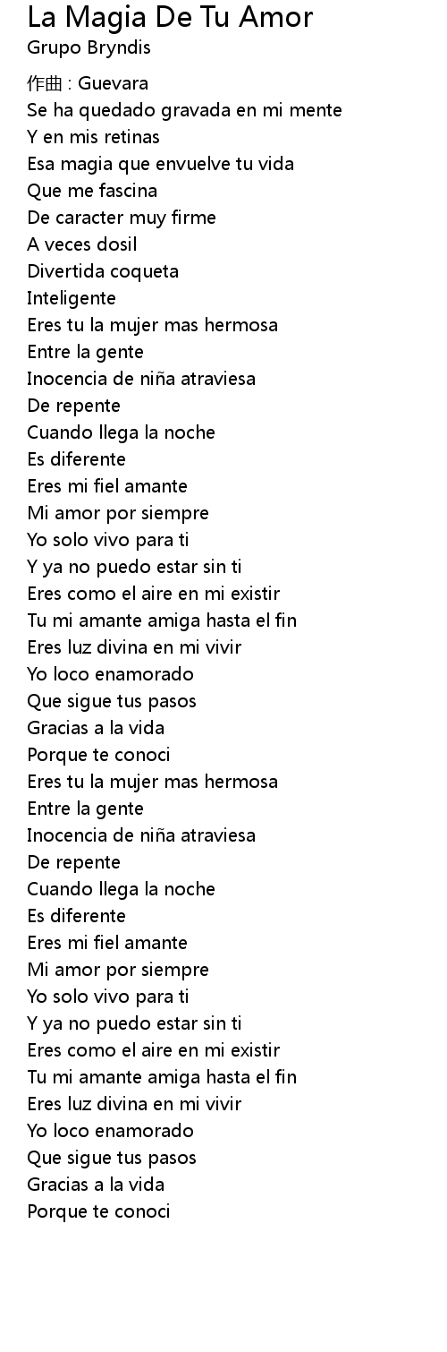 | Song | La Magia De Tu Amor |