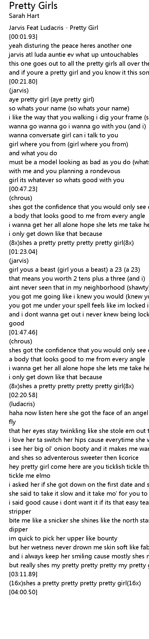 [00:00.00] Jarvis Feat Ludacris - Pretty Girl