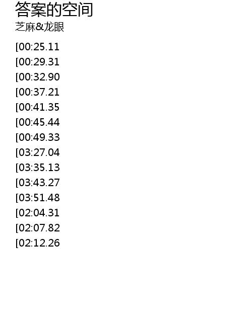| [04:15.84][03:43.27][01:47.93][01:15.57] | rang si xu zai da an de kong jian li fei xiang |