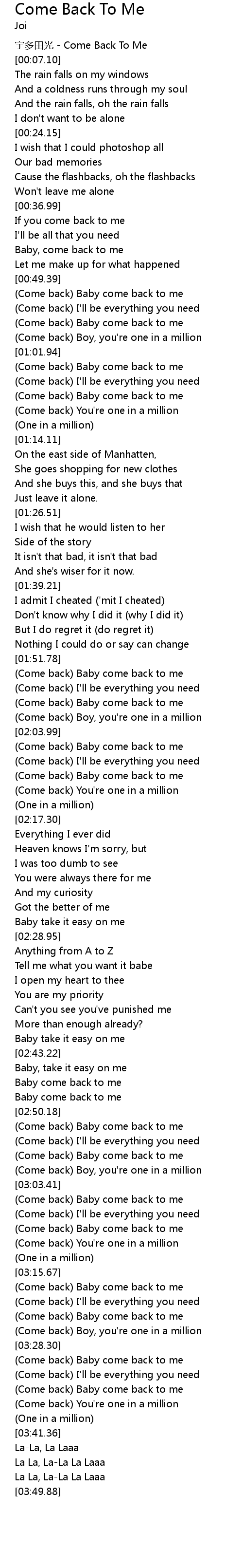 | [00:01.12] | 宇多田光 - Come Back To Me |