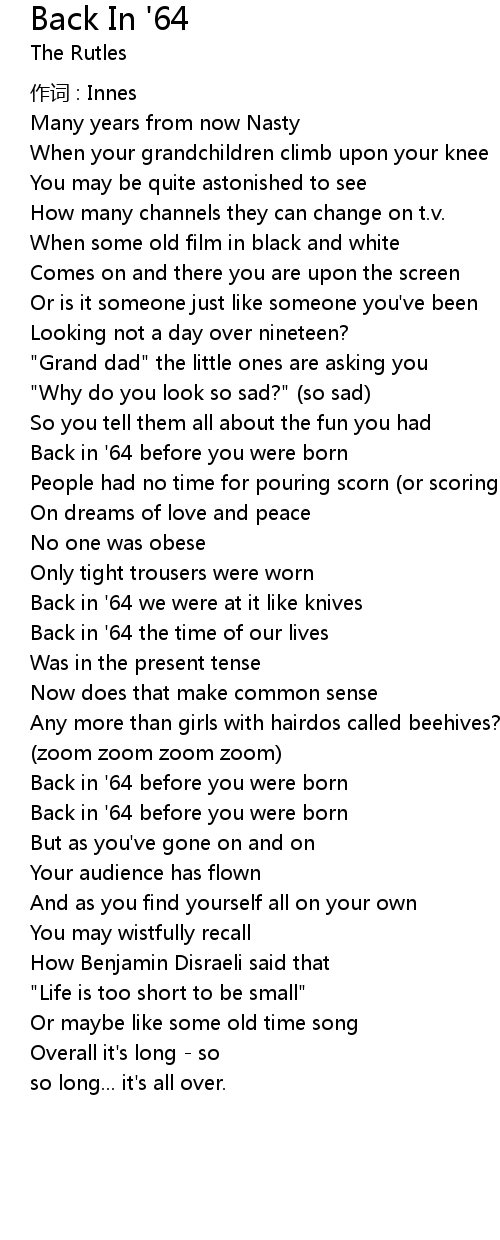 | Song | Back In '64 |