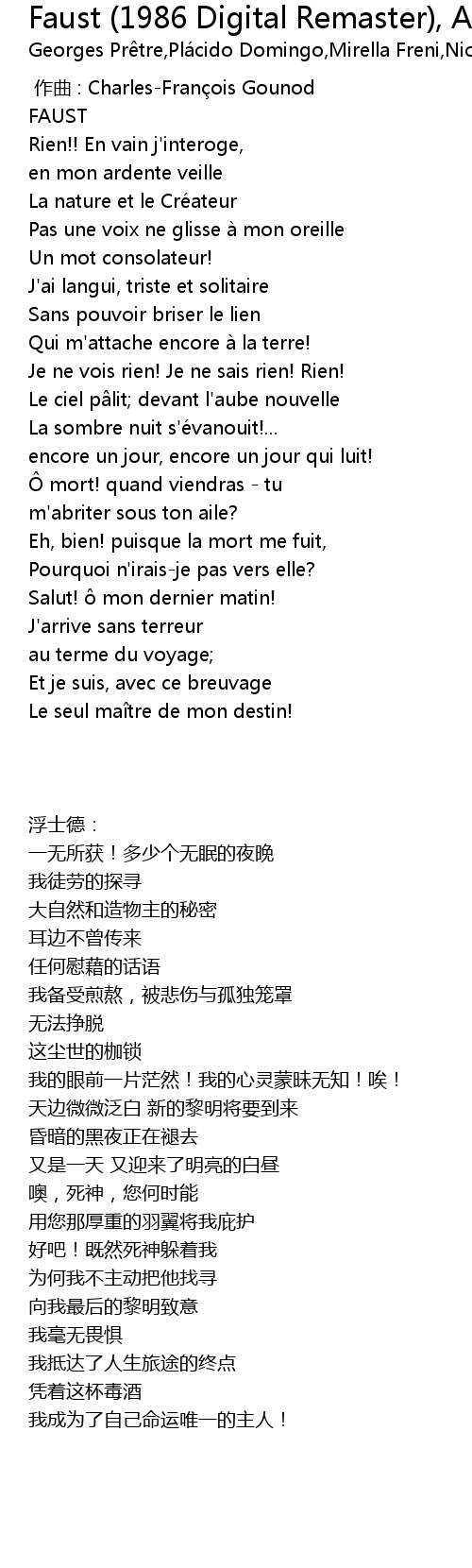 | Song | Faust (1986 Digital Remaster), Act I: Rien! En vain j'interroge (Faust) |