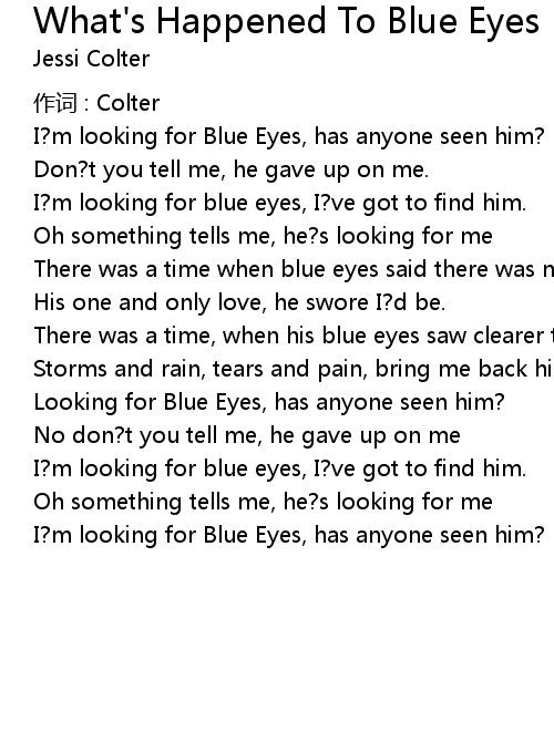 | I?m looking for blue eyes, I?ve got to find him. | |