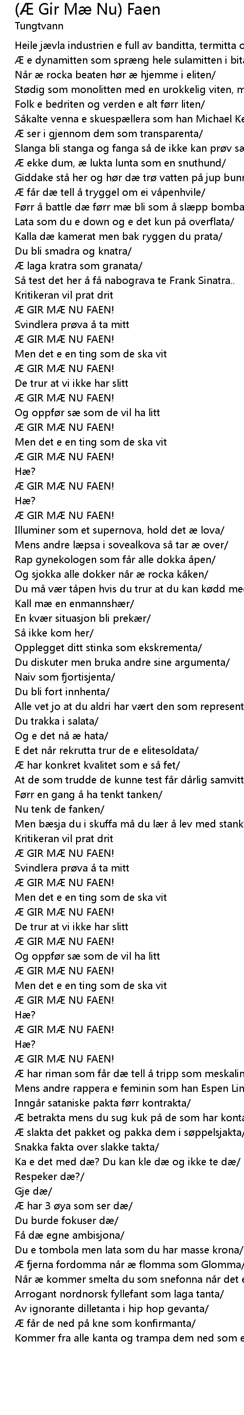 | Song | (Æ Gir Mæ Nu) Faen |