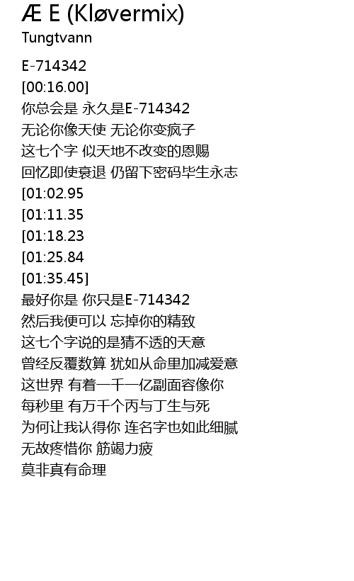 | [02:00.94] | 最好你是 你只是E-714342 |