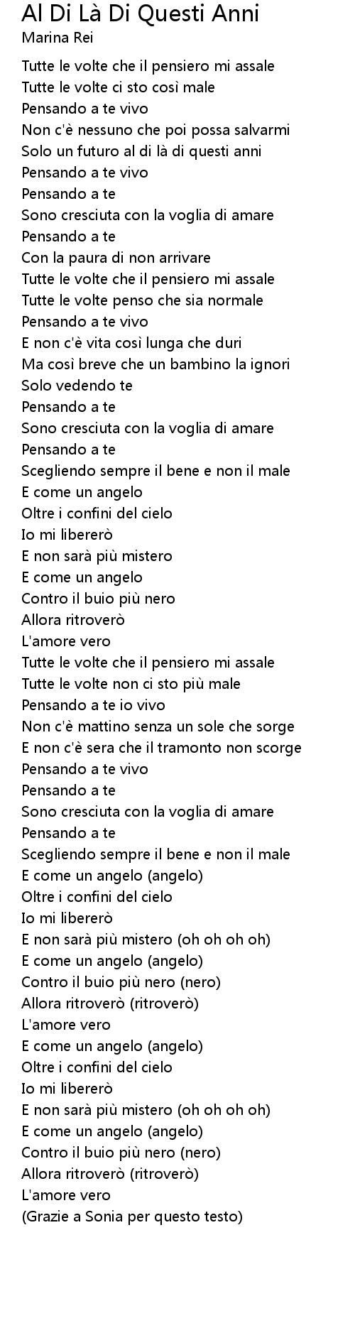 | Song | Al Di Là Di Questi Anni |