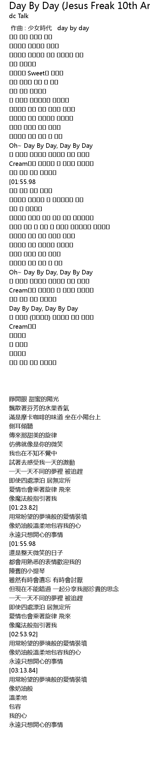 | [02:53.92] | Oh~ Day By Day, Day By Day |