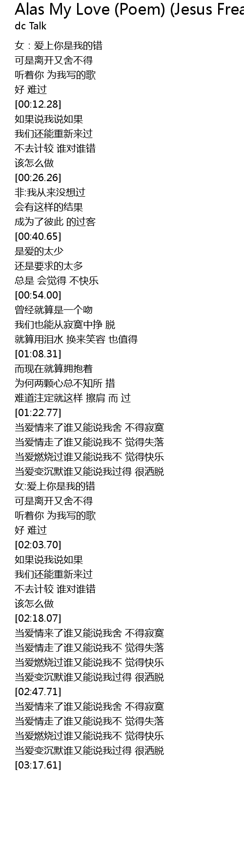 | Song | Alas My Love (Poem) (Jesus Freak 10th Anniversary Version) (2006 Digital Remaster) |