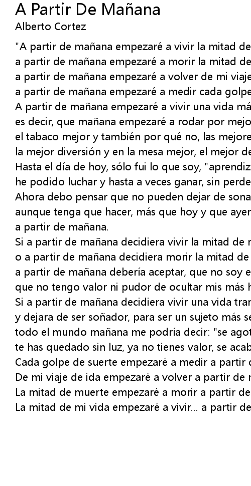 | La mitad de muerte empezare a morir a partir de ma ana. | |