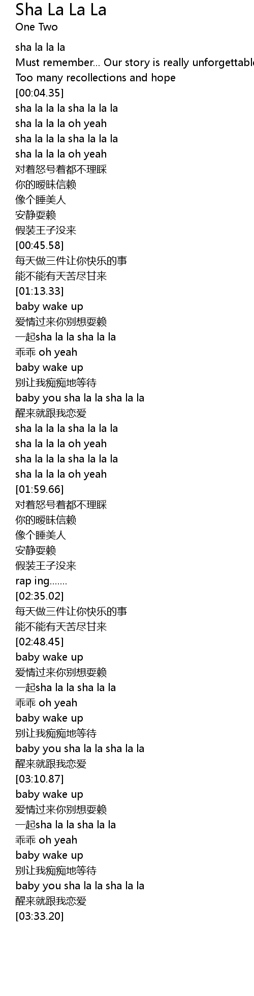 | [03:18.03] | yì qǐ sha la la sha la la |