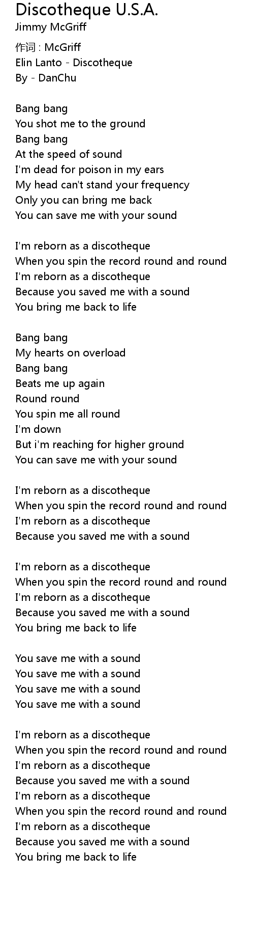 | Song | Discotheque U.S.A. |