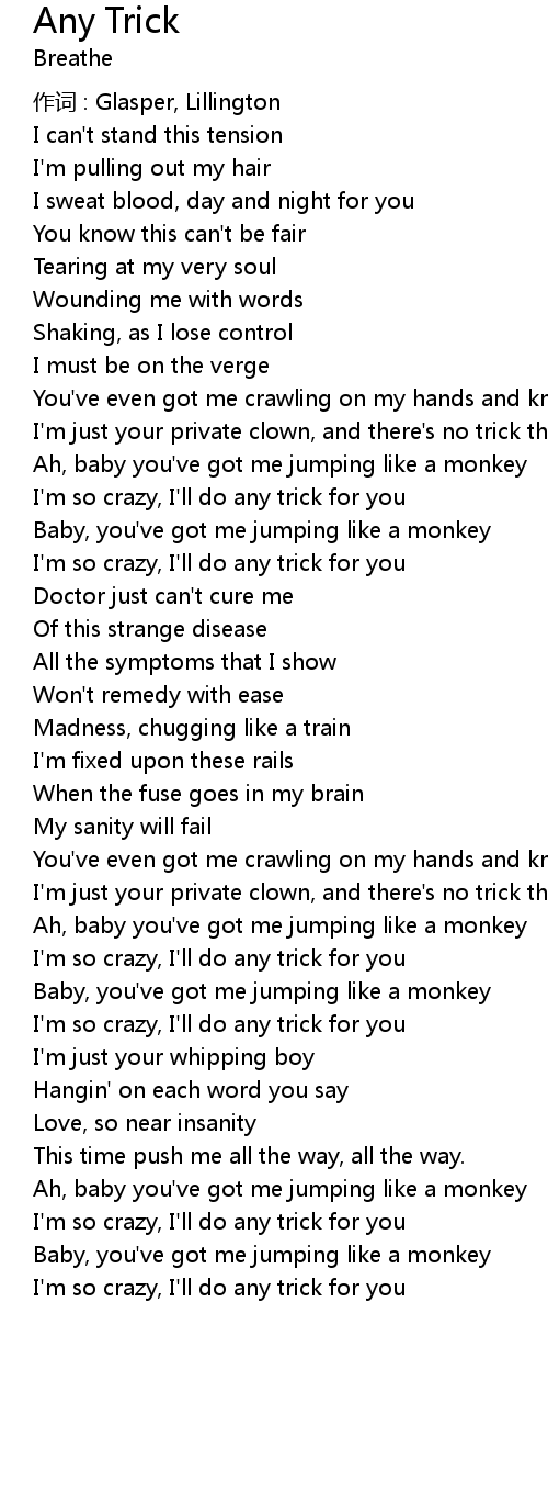 | I' m so crazy, I' ll do any trick for you | |