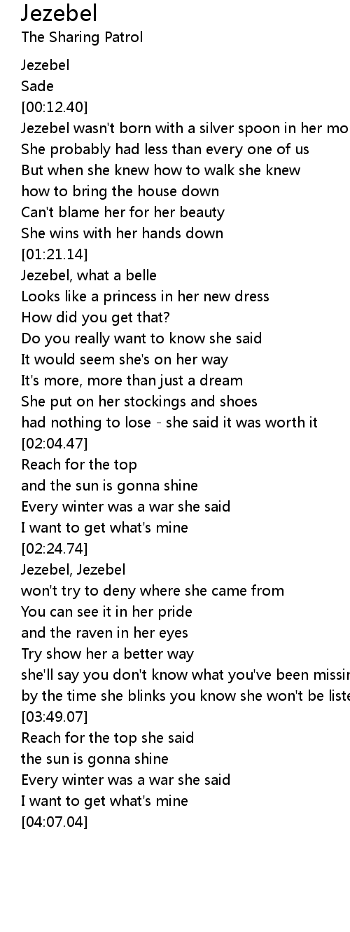[00:42.61] Jezebel wasn't born with a silver spoon in her mouth