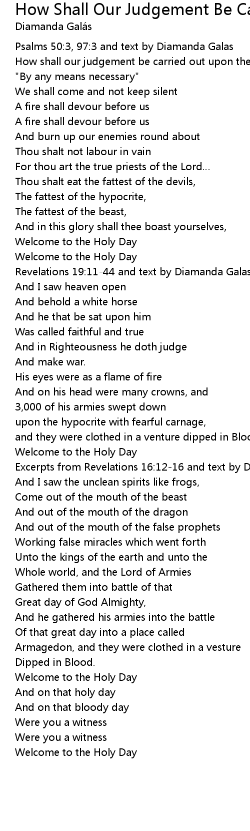 | Psalms 50:3, 97:3 and text by Diamanda Galas | |