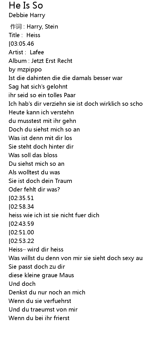 | [02:56.02][02:35.51][01:55.51][01:05.40] | Heiss - das ist sie nicht |
