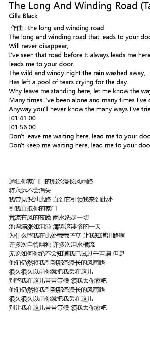 | [02:38.00][01:41.00] | Still they lead me back to the long and winding road |