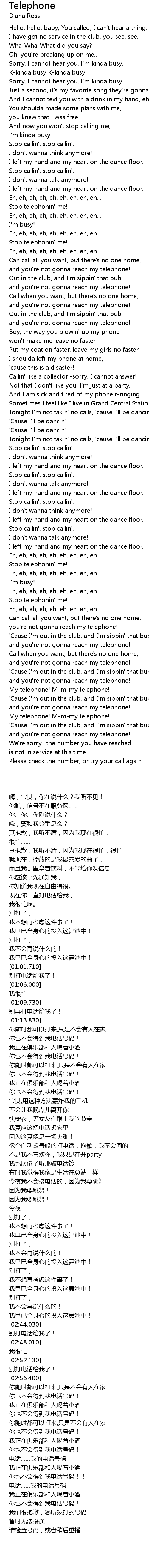| [00:06.700] | Hello, hello, baby; You called, I can't hear a thing. |