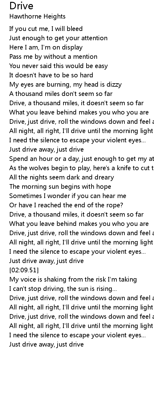 Drive, a thousand miles, it doesn't seem so far |