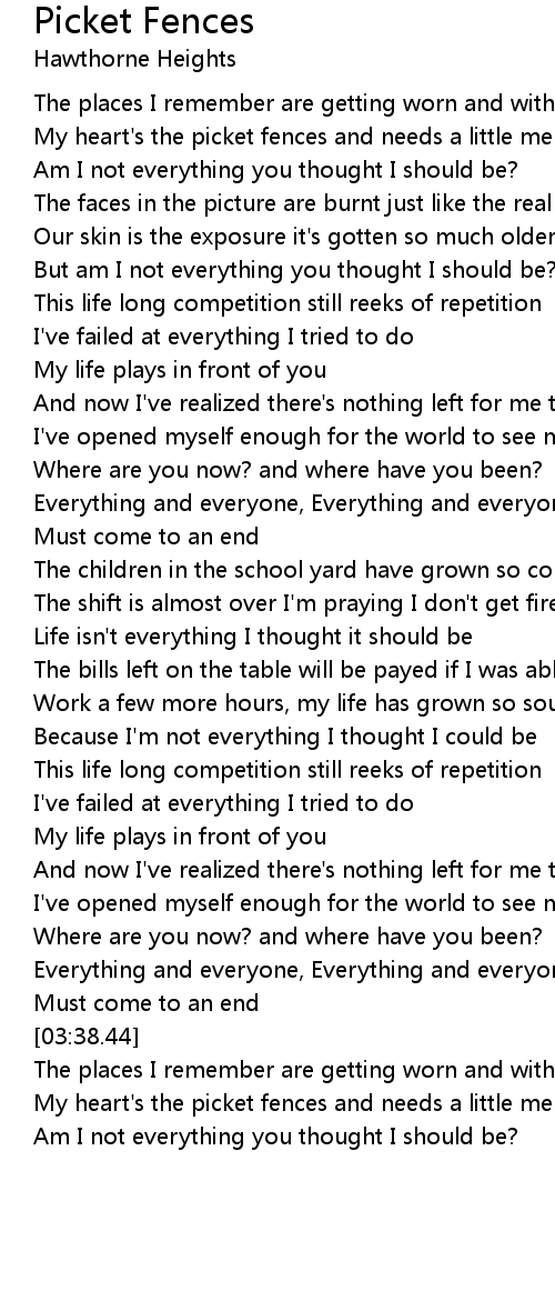 My heart's the picket fences and needs a little mending |