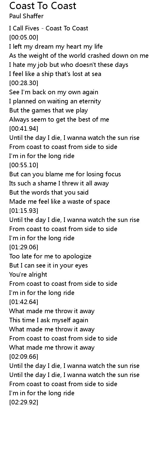 I Call Fives - Coast To Coast |