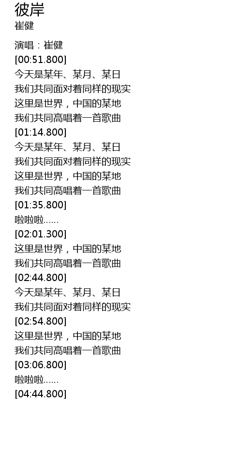 | [00:49.800] | 演唱:崔健 |