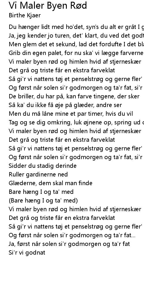 | Vi maler byen r d og himlen hvid af stjernesk r | |