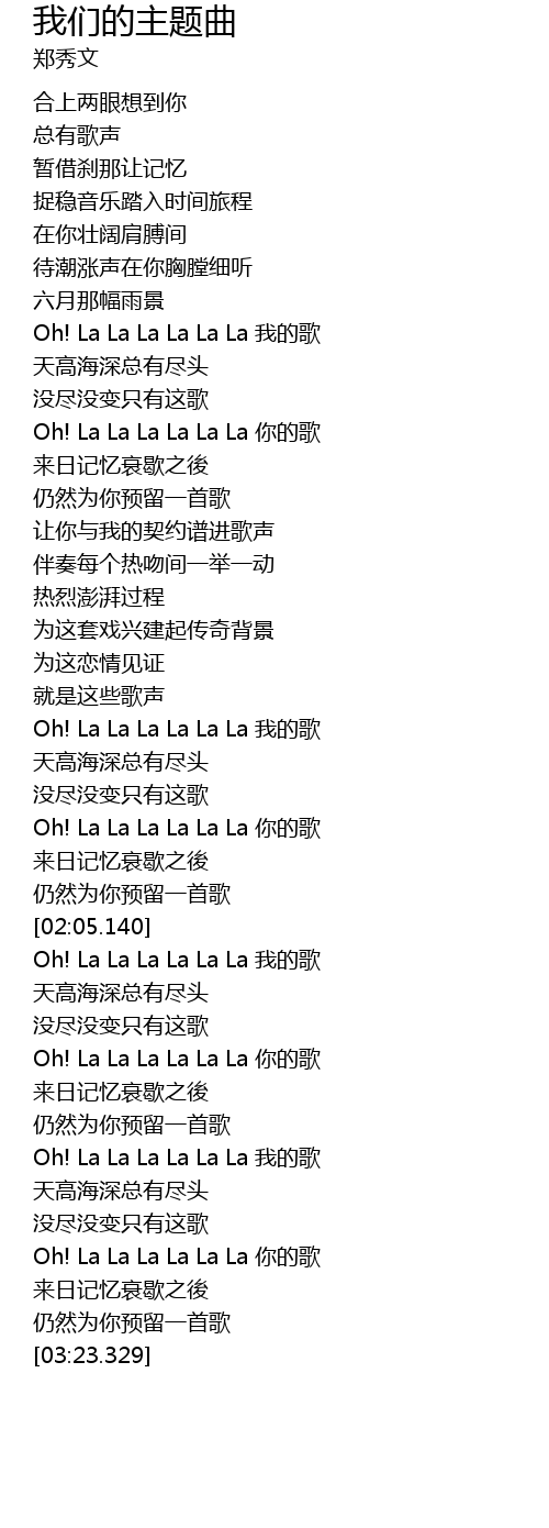 | [03:07.690] | Oh! La La La La La La 你的歌 |