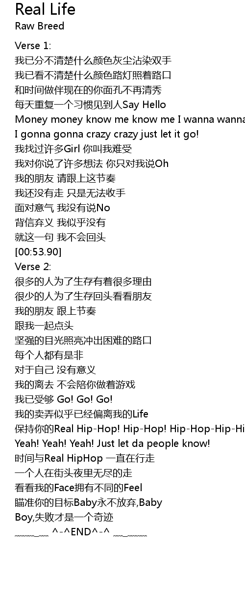 | [01:44.36] | 时间与Real HipHop 一直在行走 |