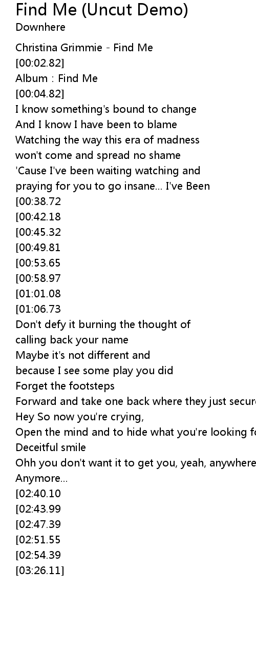 | [03:10.72][02:40.10] | Hold me now and come on out and find me |