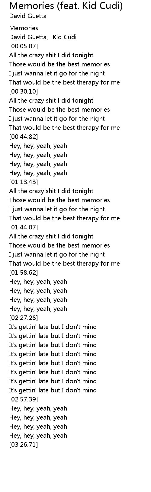 | [00:03.00] | David Guetta、Kid Cudi |