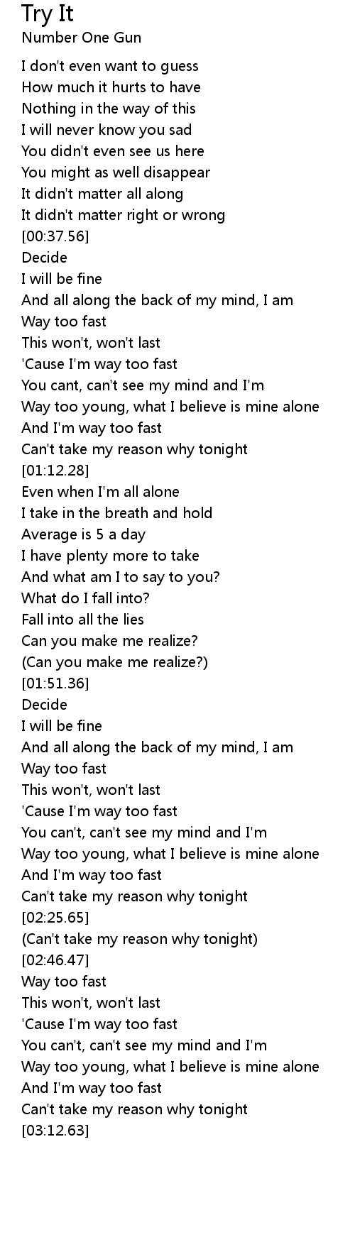 And I'm way too fast |