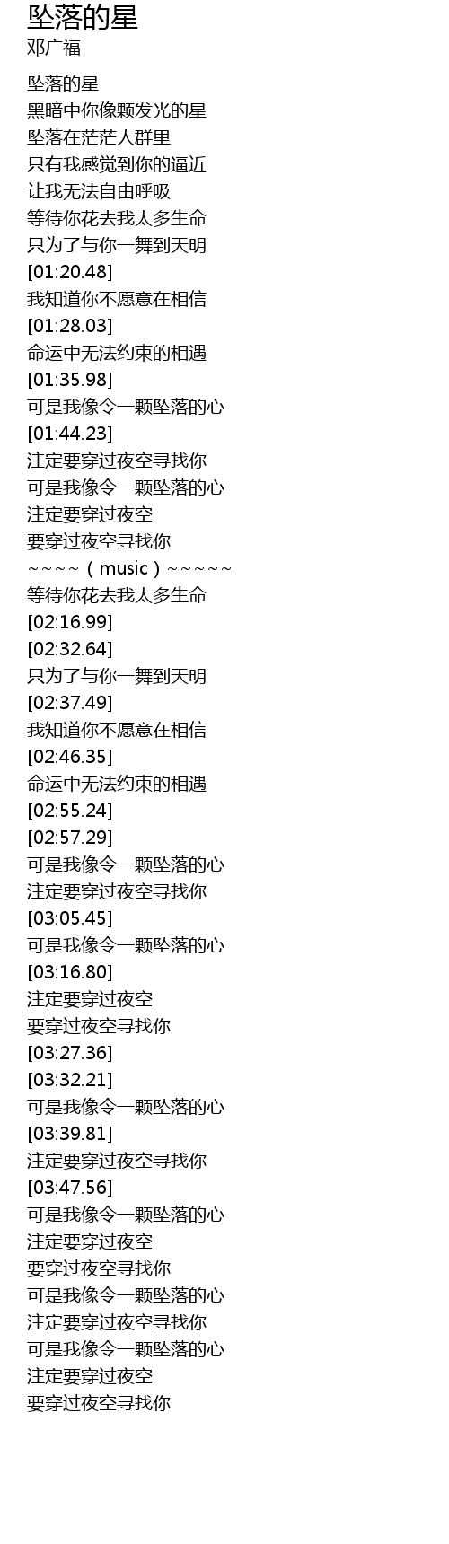| [00:01.10] | 坠落的星 |