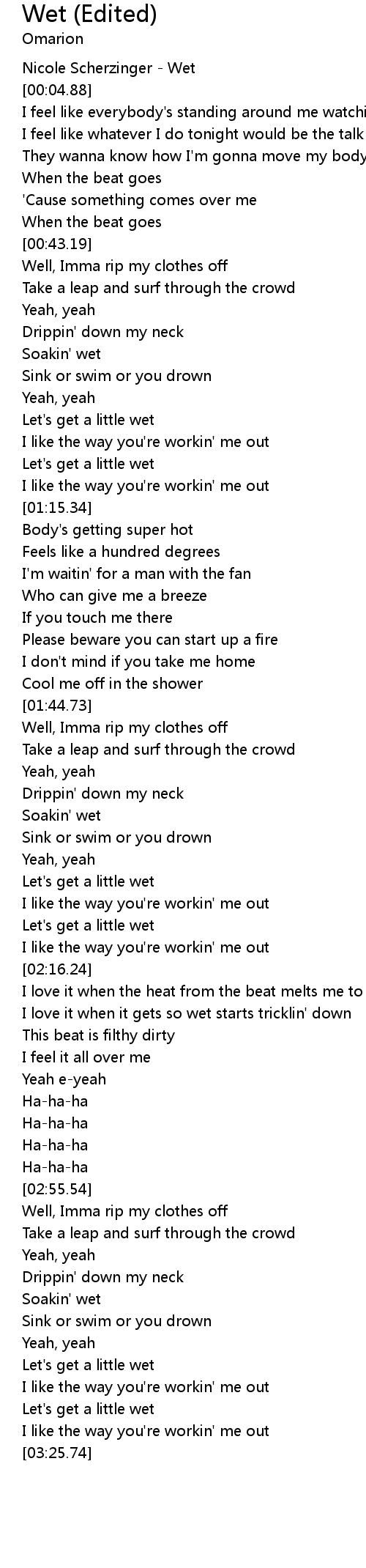 | [03:04.76] | Soakin' wet |