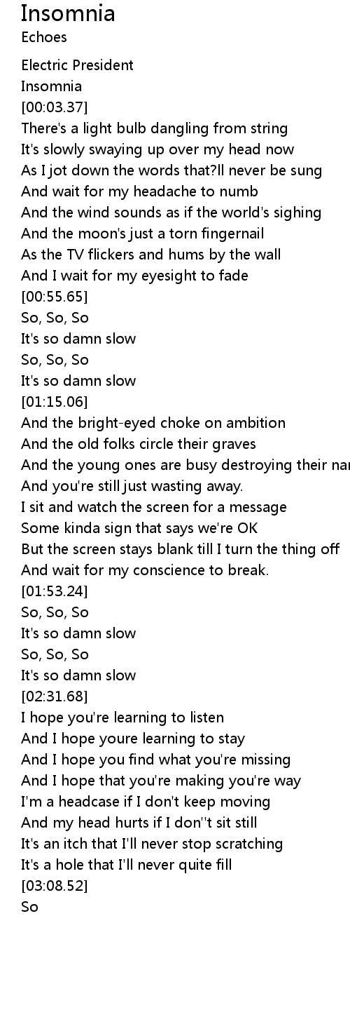 | [00:03.05] | Insomnia |