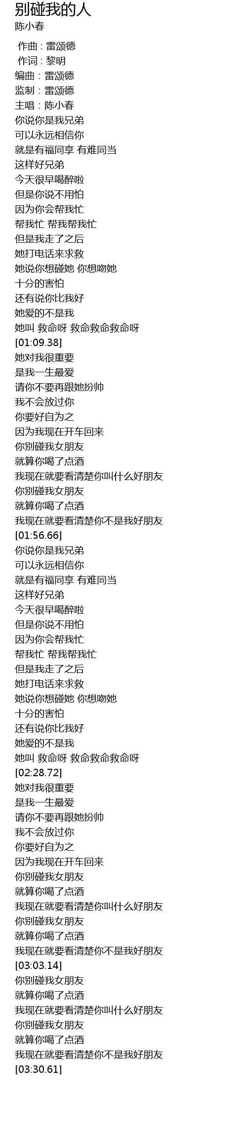 | [03:22.61] | nǐ bié pèng wǒ nǚ péng yǒu |